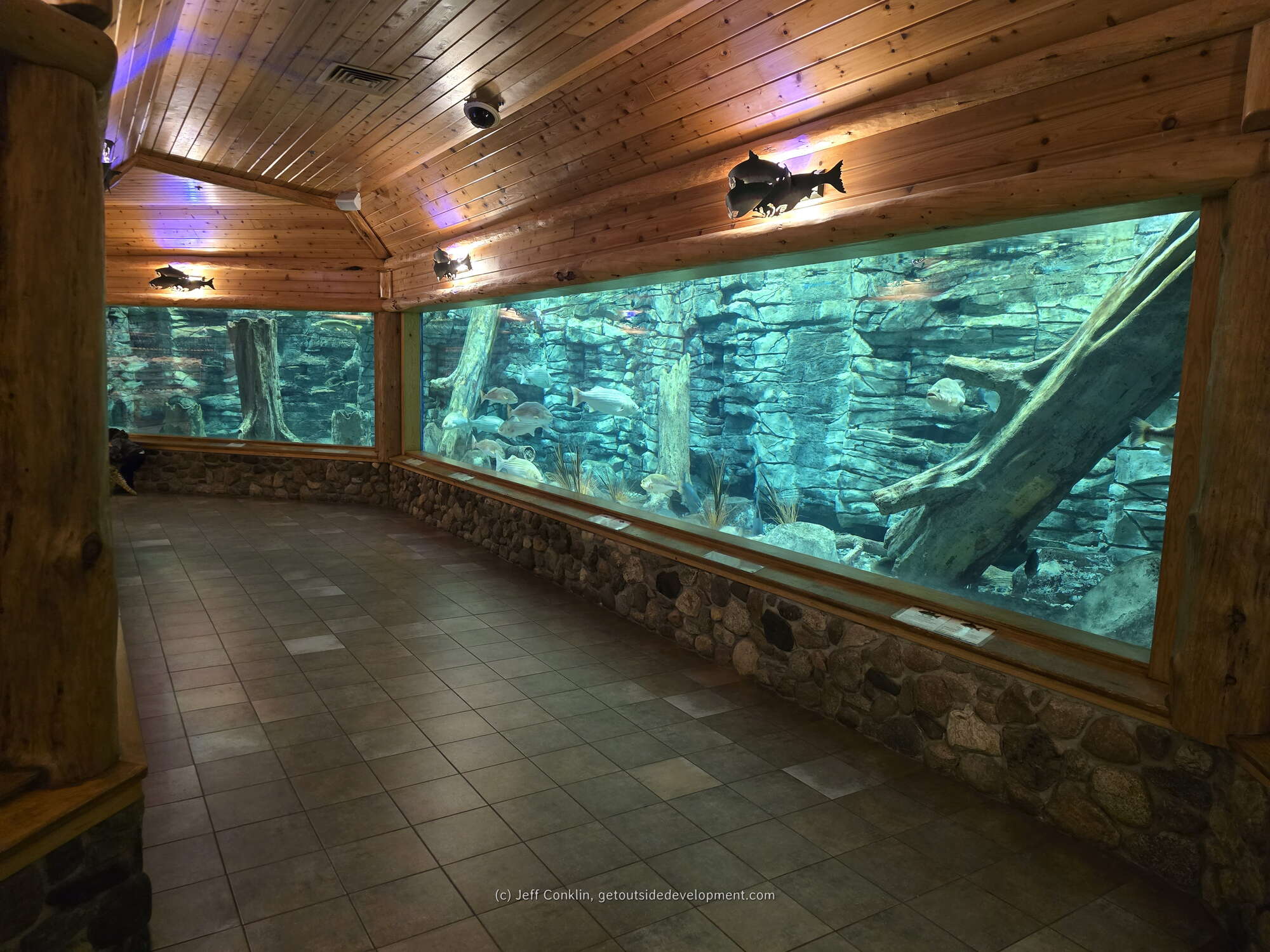 Beyond the holiday festivities, Cabela's offers a variety of attractions that make it more than just a retail store. We explored the impressive 30-foot-tall Conservation Mountain, featuring two waterfalls and numerous wildlife mounts, including a record-breaking black bear and non-typical elk. The 55,000-gallon aquarium, home to over 30 species of fish, captivated our attention, and the indoor archery range provided interactive fun for the whole family.